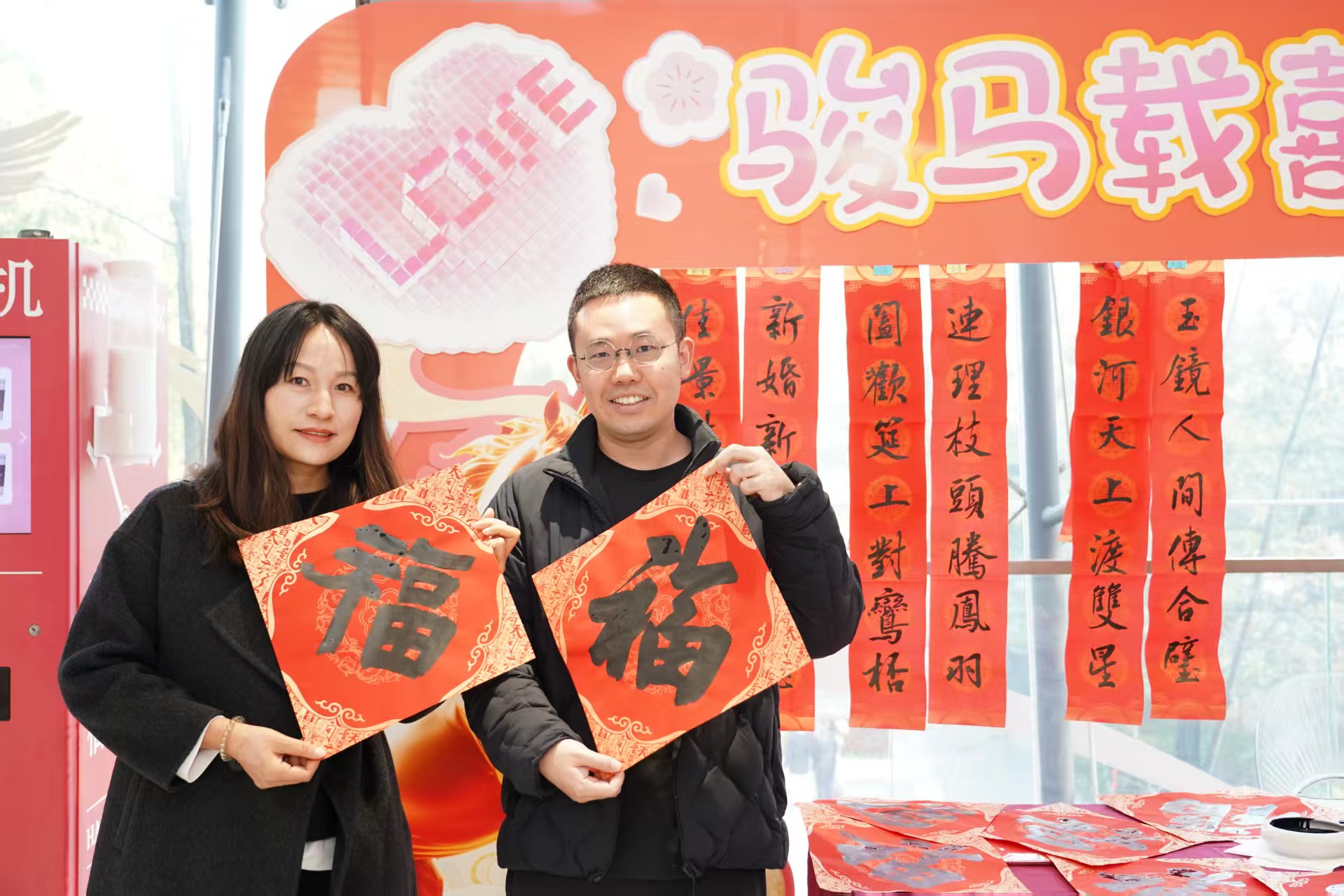 活动现场还设有“甜蜜经济”市集、邮政主题市集、“新春墨韵”书法送福区、婚嫁喜服展示区等,融合文旅体验、惠民消费与传统民俗,贴合新人情感需求,营造出甜蜜浪漫的结婚氛围与喜庆祥和的新春气氛。