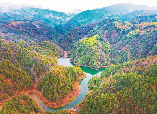 近日,安庆市岳西县田头乡,群山叠翠,碧水蜿蜒,构成一幅秀美的生态山乡春日画卷。