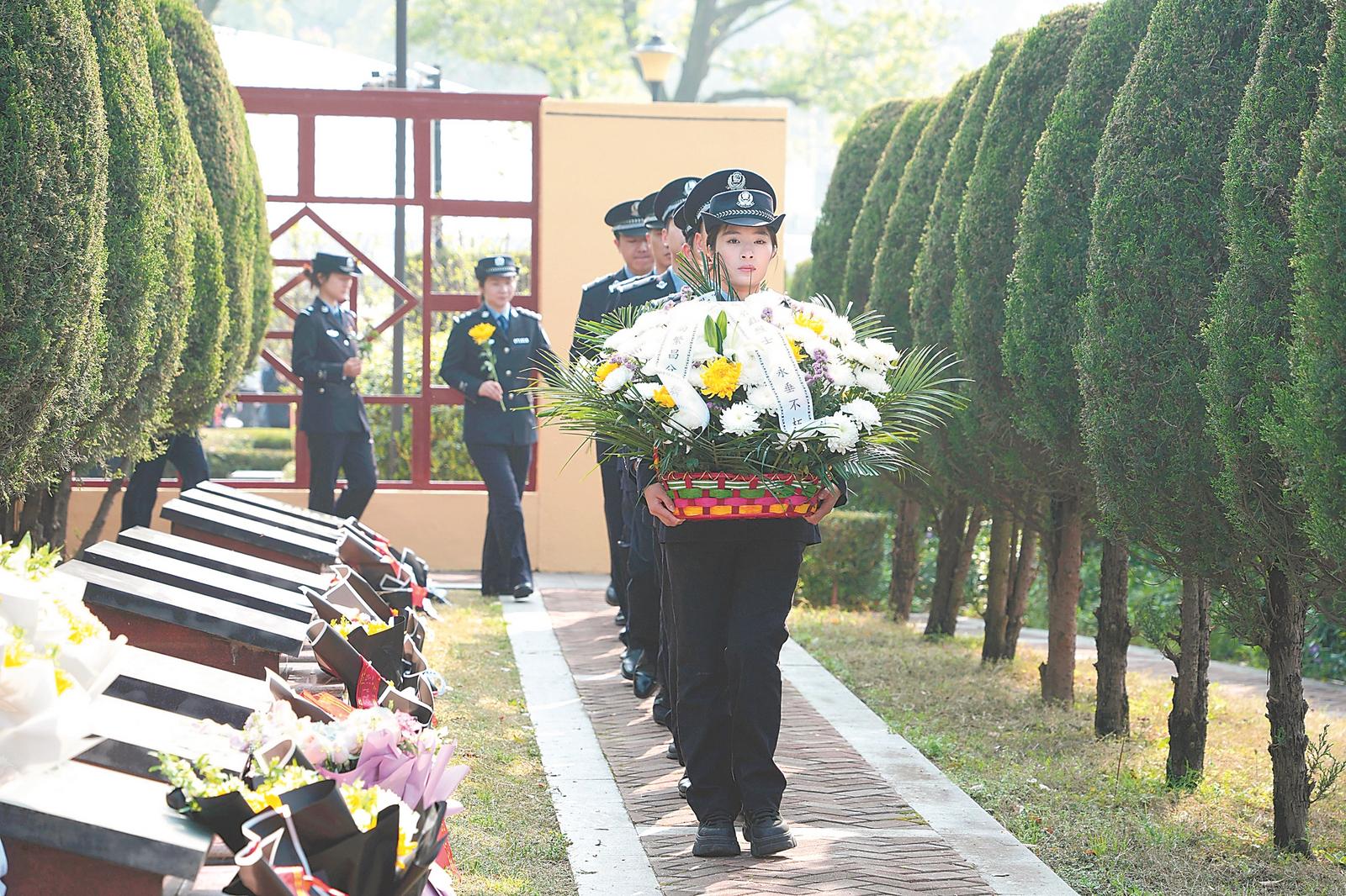 4月1日,芜湖市公安局繁昌分局组织民警赴芜湖市烈士陵园开展清明祭英烈活动,致敬公安英烈,汲取奋进力量。本报通讯员 侯迪 摄