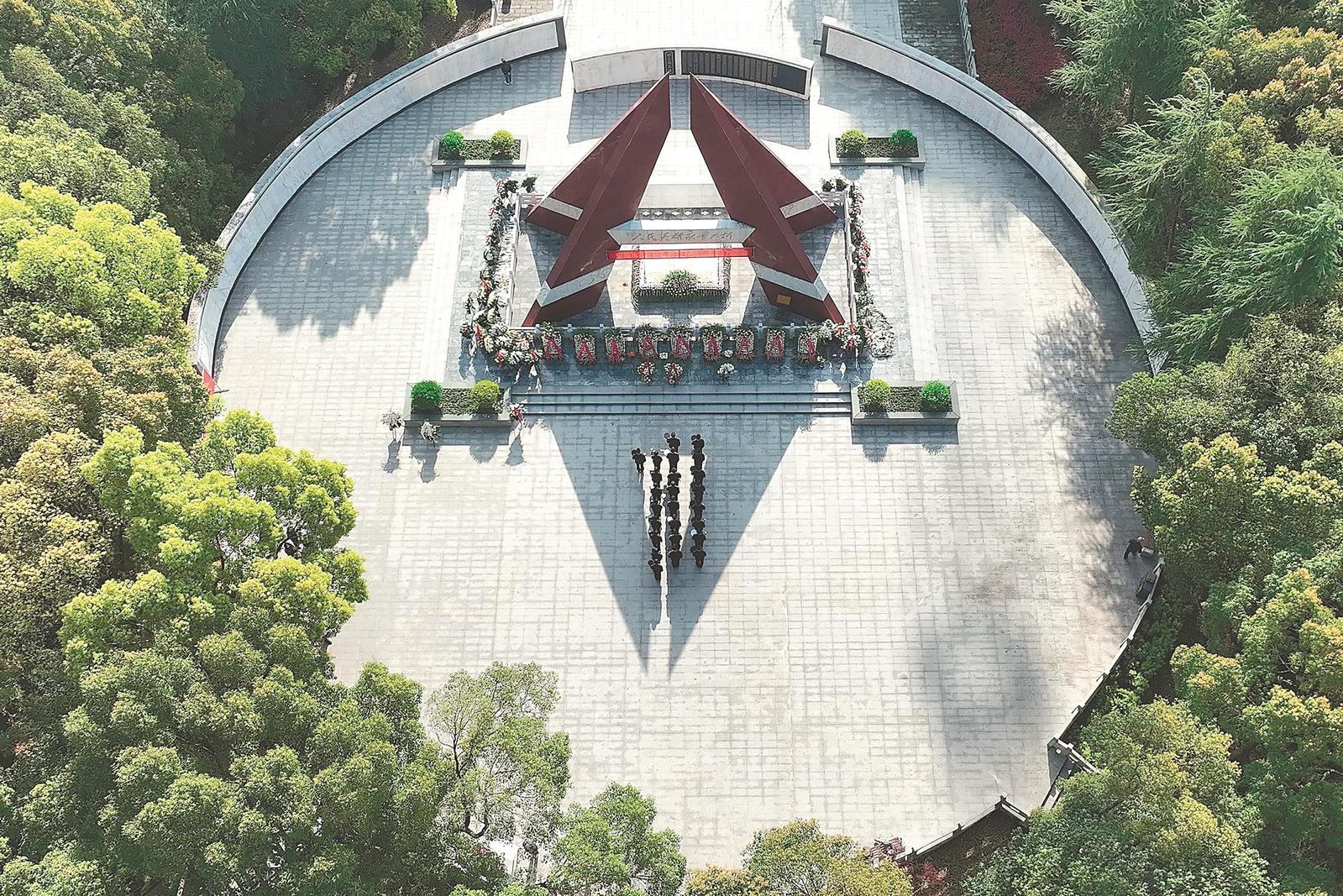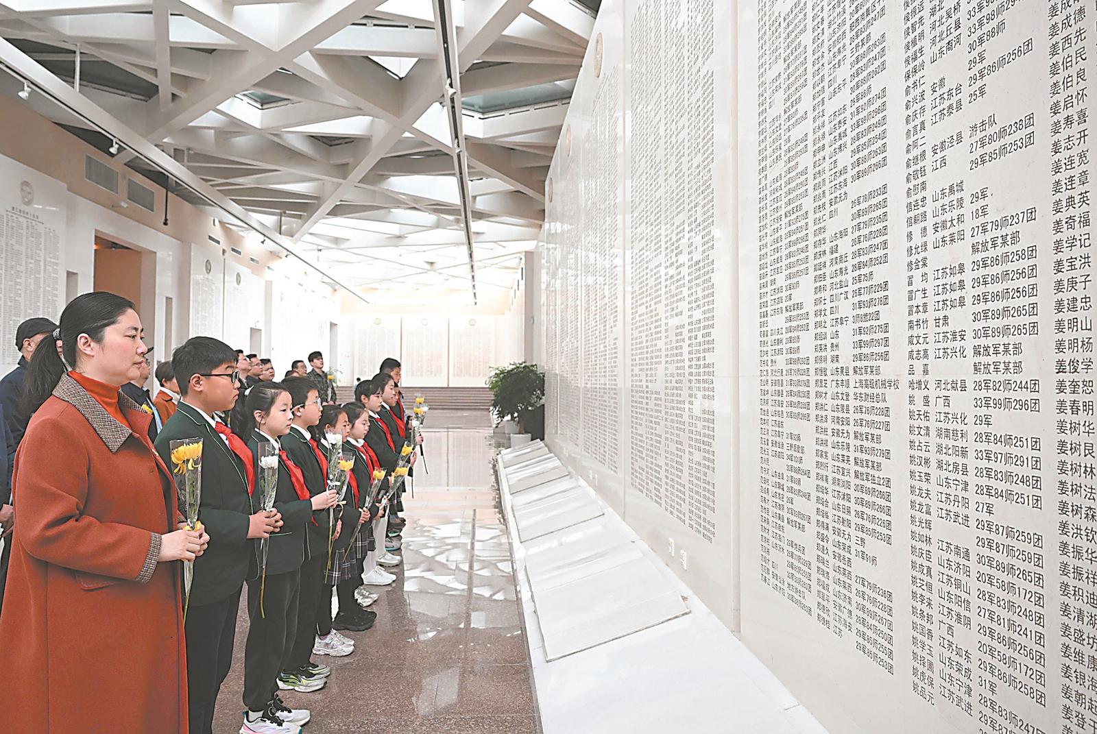 3月31日,位于合肥市巢湖之畔的渡江战役纪念馆内,各界人士为在渡江战役中牺牲的英烈们送上鲜花,寄托哀思,传承英烈遗志。本报记者 张大岗 摄
