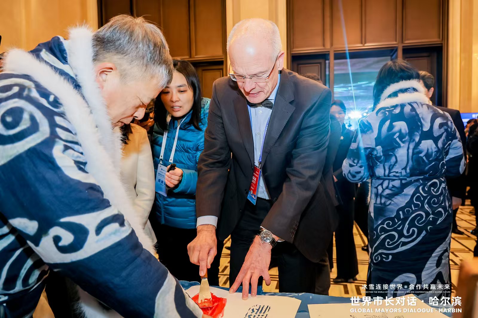人民网哈尔滨1月8日电 (记者张齐)1月7日下午,“世界市长对话·哈尔滨”主对话活动在哈尔滨友谊宫举行。对话活动前,代表们在非遗手工展区沉浸式感受中华优秀传统文化的独特魅力。