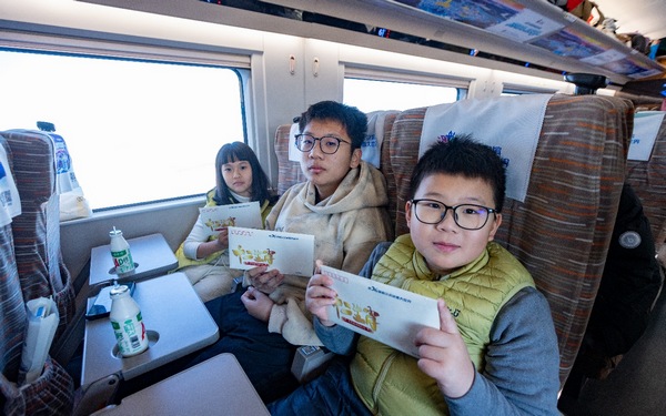 近日,哈尔滨冰雪大世界工作人员随车同行,化身“冰雪使者”,把来自北国的冰雪祝福送到旅客身边,将精心制作的“冰冰”“雪雪”玩偶、十二生肖冰雕明信片、高铁动车明信片等礼物赠予游客。“太惊喜了,不仅很幸运地乘坐‘哈尔滨冰雪大世界’主题高铁列车,还收到了礼物,哈尔滨真的太暖了!”收到礼物的旅客满脸笑意地说。