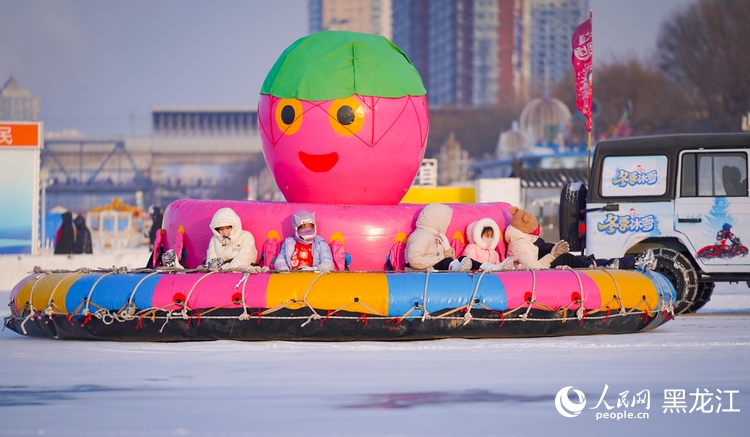而在松花江冰雪嘉年华园区,则是另一番热闹景象。雪圈道上传来阵阵尖叫,冰上自行车的铃声此起彼伏,游客们驾驶着冰雪四驱车在指定区域内体验速度与激情。市民张先生一家三口正玩得不亦乐乎,他感慨道:“这样的亲子时光太珍贵了。冰雪运动让我们更深刻地感受到了‘冰城’的魅力,也让我们在这个冬天有了不一样的收获。”