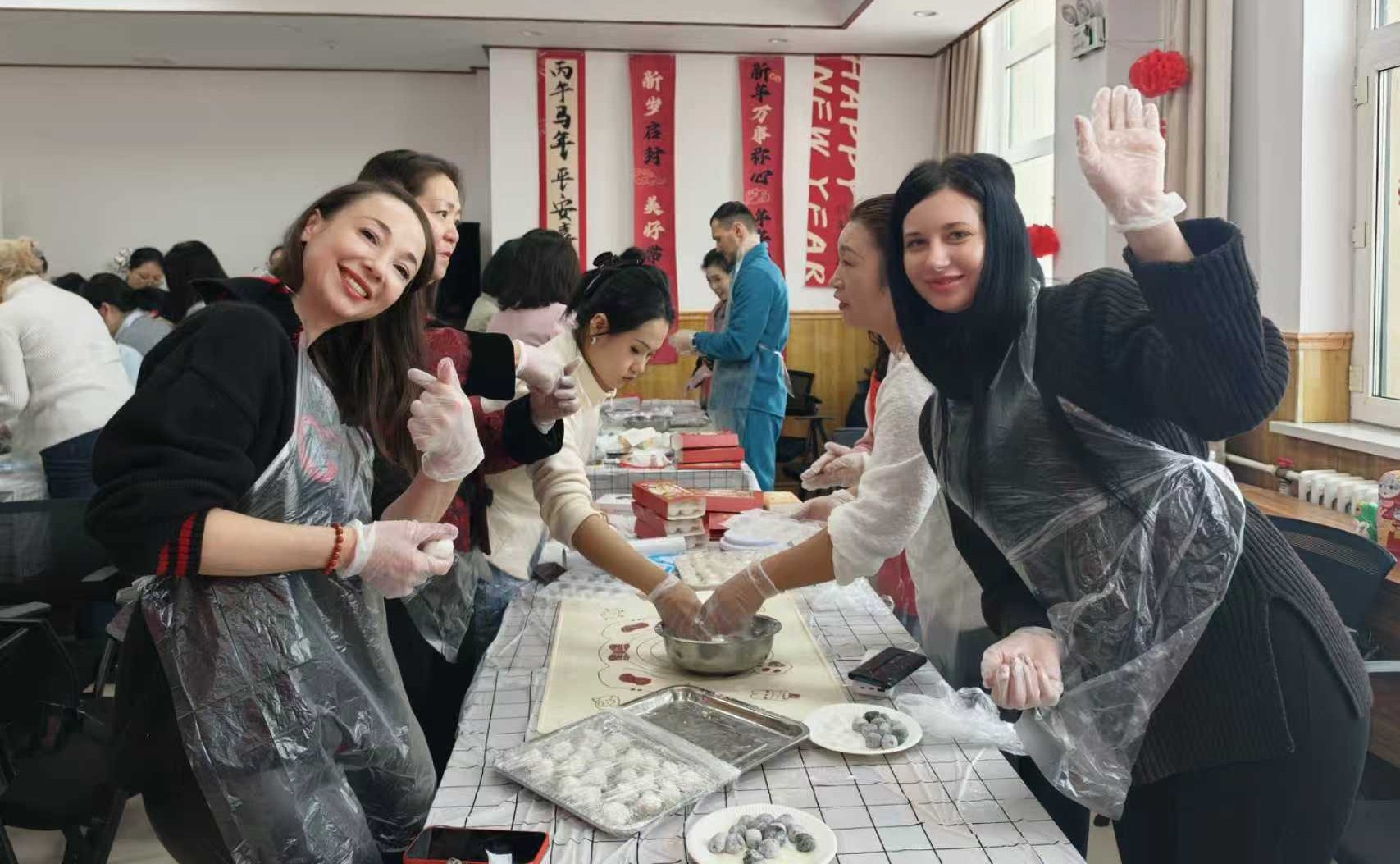 中俄姐妹们围坐在案桌前,揉面、包馅、搓圆,动作从生疏到娴熟。不一会儿,托盘里便摆满了圆润饱满的元宵。当热气腾腾的元宵端上桌,大家共同品尝这份甜糯,舌尖上是中华饮食文化的醇厚滋味,心底里是中俄相聚相知的和睦情谊。中俄双方女性代表踊跃发言,分享感受。中国姐妹将精心准备的红色福马手工艺品赠予俄罗斯友人,传递节日的吉祥与祝福;俄方姐妹回赠甜蜜的俄罗斯糖果,表达对友谊的珍视,然后中俄姐妹手持礼物合影留念。