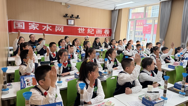活动现场,市水务局工作人员为现场学生带来“中国水网 世纪画卷”主题科普宣讲,通过播放水资源科普宣传动画短片,让学生们清晰地了解自然界水循环过程,以及日常节水的重要性与现实意义。