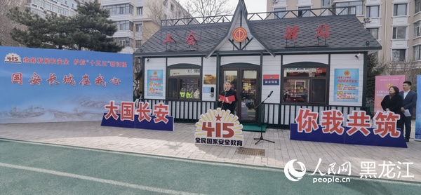 人民网哈尔滨4月13日电 (记者徐成龙)4月13日,由黑龙江省总工会、省国安厅主办,哈尔滨市总工会、道里区总工会承办的全民国家安全教育日宣传活动启动仪式在哈尔滨举行。黑龙江省12个市(地)总工会在本地人流多的驿站设立分场,携全省2900多家工会驿站同步启动宣传活动。