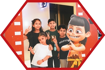在沙特阿拉伯利雅得,观众在《哪吒之魔童闹海》的宣传展板拍照留念。 |
