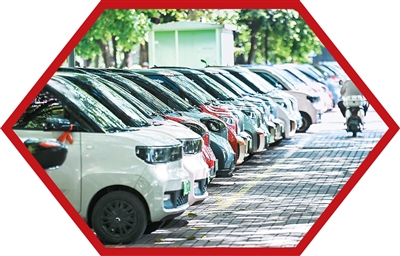 在广西壮族自治区柳州市街头拍摄的一处新能源汽车专用停车区。 |