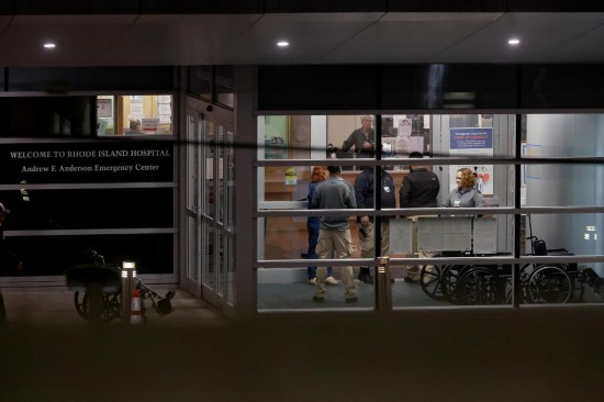 12月13日,在美国罗得岛州普罗维登斯市,人们站在接收布朗大学枪击案受害者的医院入口。新华社/美联