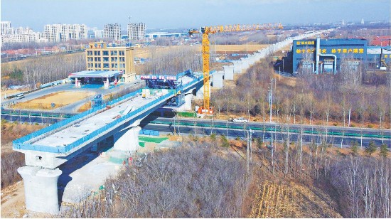 潍宿高铁跨潍坊特大桥宝通东街(G308国道)连续梁施工现场。(张蓓 张臣意)