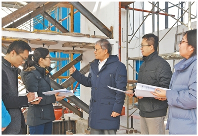 吕西林(右三)在工程现场指导学生。 |