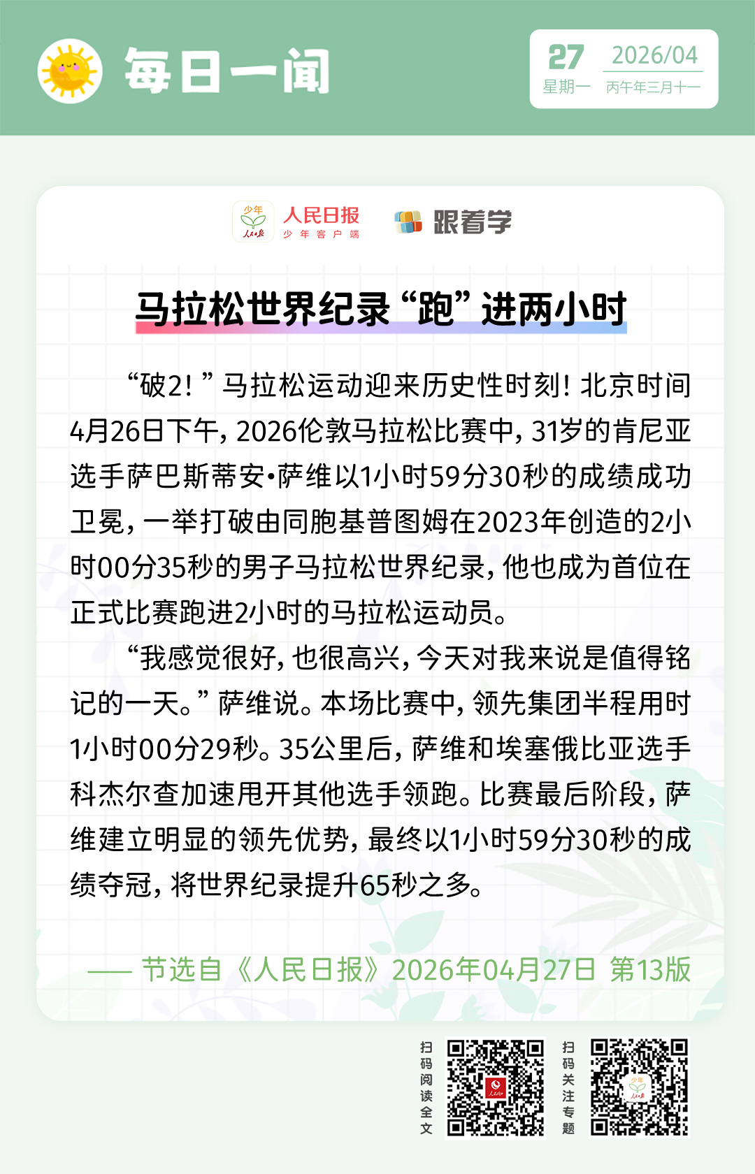 每日一闻丨马拉松世界纪录“跑”进两小时